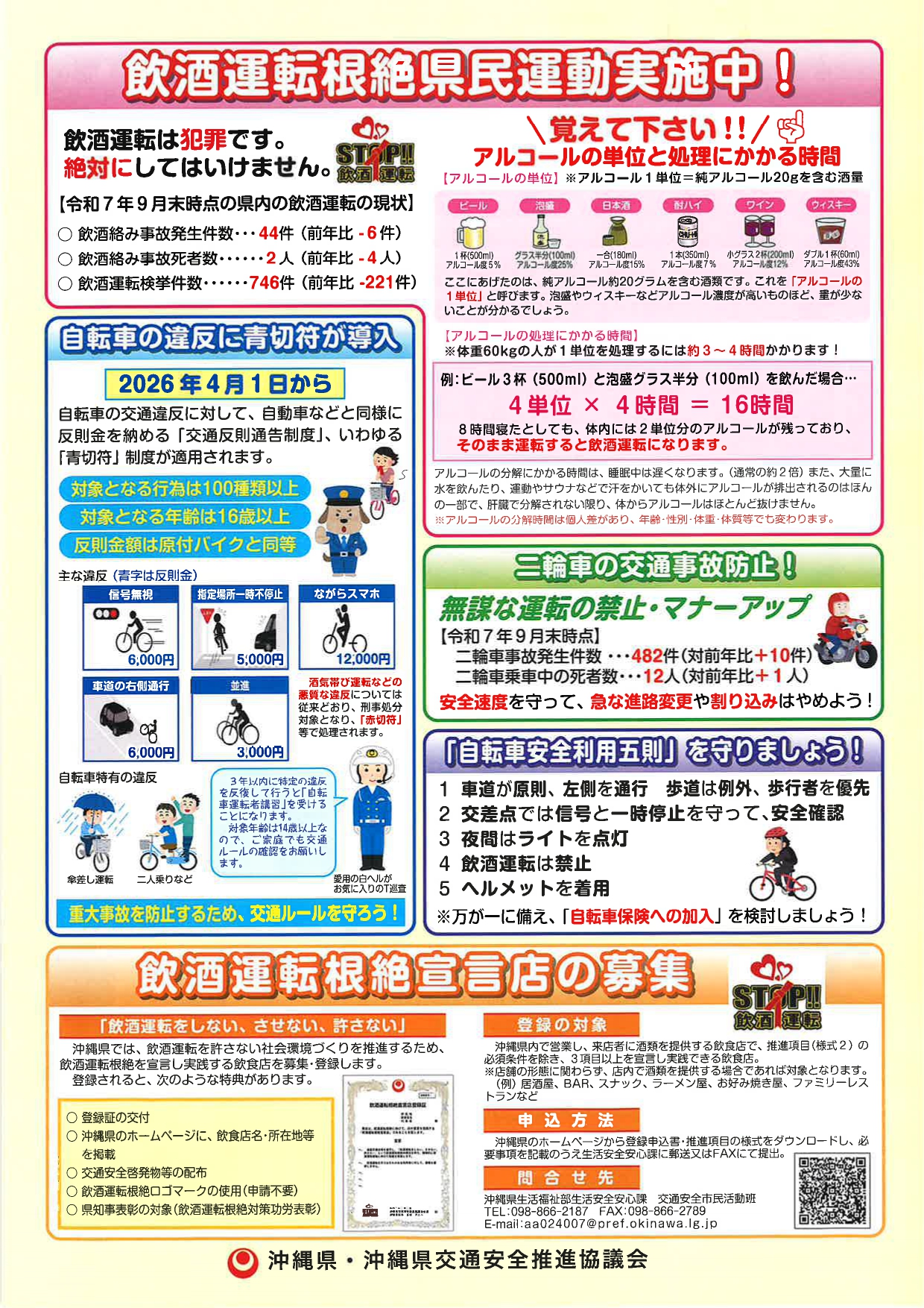 日本一交通安全な那覇市を目指し、取り組んで行きますので